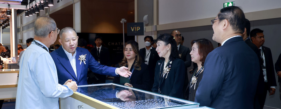 อีกไฮไลต์สำคัญของงานในปีนี้ คือการยกระดับพื้นที่จัดแสดงให้เป็นเวทีเจรจาธุรกิจระดับนานาชาติโดยมี พาวิลเลียนผู้ออกแสดงสินค้าจากหลายประเทศ อาทิ ASEAN Pavilion ที่รวบรวมผู้ผลิตจากประเทศในอาเซียน, China Pavilion ที่โดดเด่นด้านบรรจุภัณฑ์ โรงงาน OEM/ODM และเครื่องประดับและเพชรสังเคราะห์, Sri Lanka Pavilion นำเสนอไพลินคุณภาพระดับโลกภายใต้แนวคิด “Mine to Masterpiece” และ Japan Pavilion จัดแสดงไฟน์จิวเวลรี่ ไข่มุก รวมถึงเครื่องประดับคุณภาพสูงภายใต้มาตรฐาน Made in Japan”